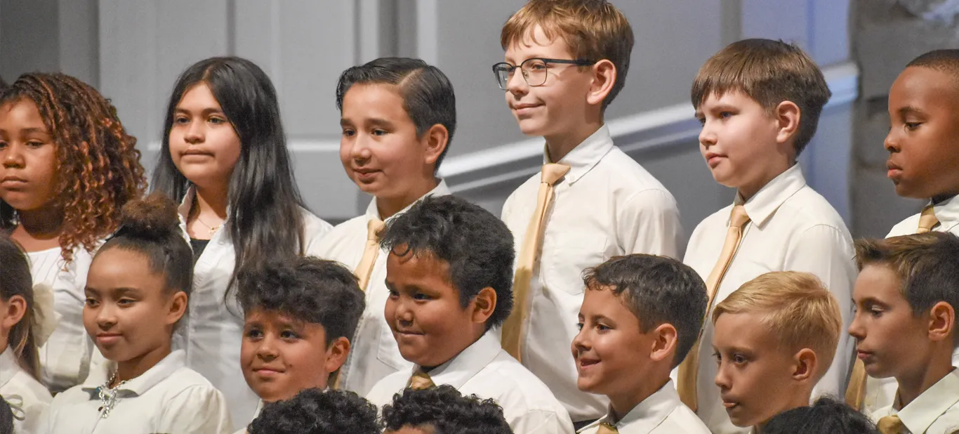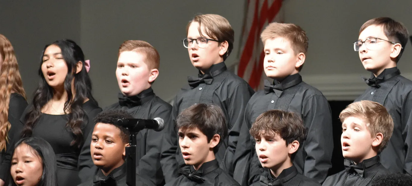 Our Elementary Choir Program is for students in grades K4–5th and is designed to build strong foundational vocal skills through structured training and sight-singing. Students have the opportunity to showcase their talents in our annual school concerts, and those in grades 3–5 may also participate in state-level fine arts competitions. Optional private voice lessons are available to support and enhance individual vocal development.